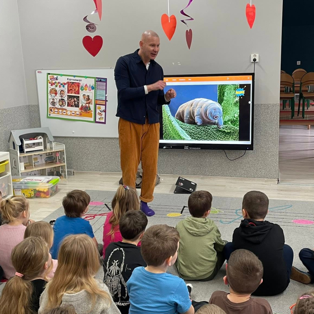Z naszym ambasadorem, przyrodnikiem i naukowcem Adamem Zbyrytem w dniach 11 – 13.02.2026 r. nowe Lekcje przyrody z Dobrą Energią dotarły do kolejnych szkół. Odwiedziliśmy uczniów szkół podstawowych, by opowiedzieć im o przyczynach zmian klimatycznych.