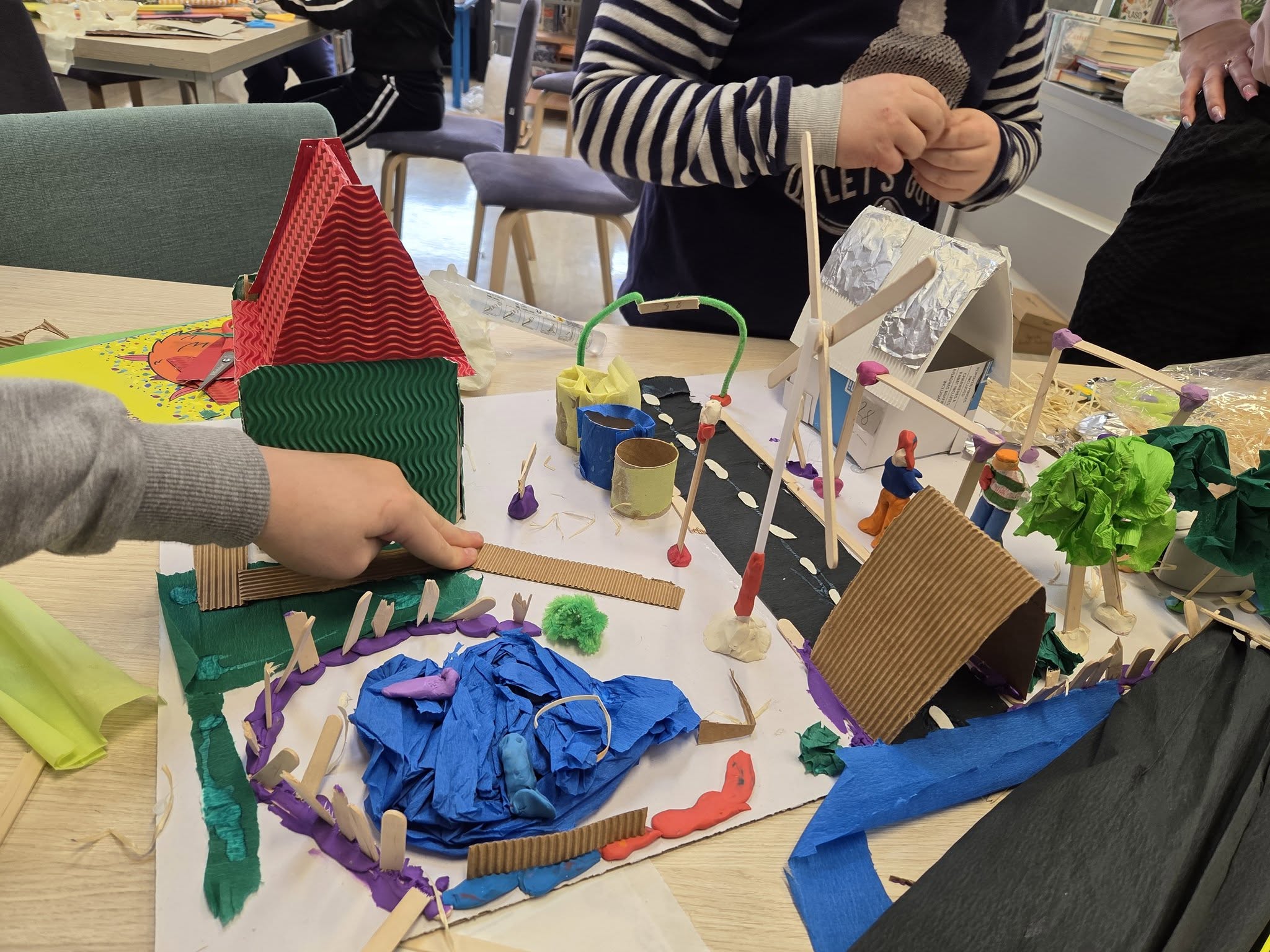 Także w Gminnej Bibliotece Publicznej w Poświętnem odbyły się kolejne wyjątkowe zajęcia edukacyjno-plastyczne, w których uczestniczyły dzieci z trzeciej klasy szkoły podstawowej. Spotkanie rozpoczęło się od rozmowy o tym, jak można dbać o naszą planetę. Nie zabrakło tu kwestii segregacji odpadów i recyklingu czy wpływu człowieka