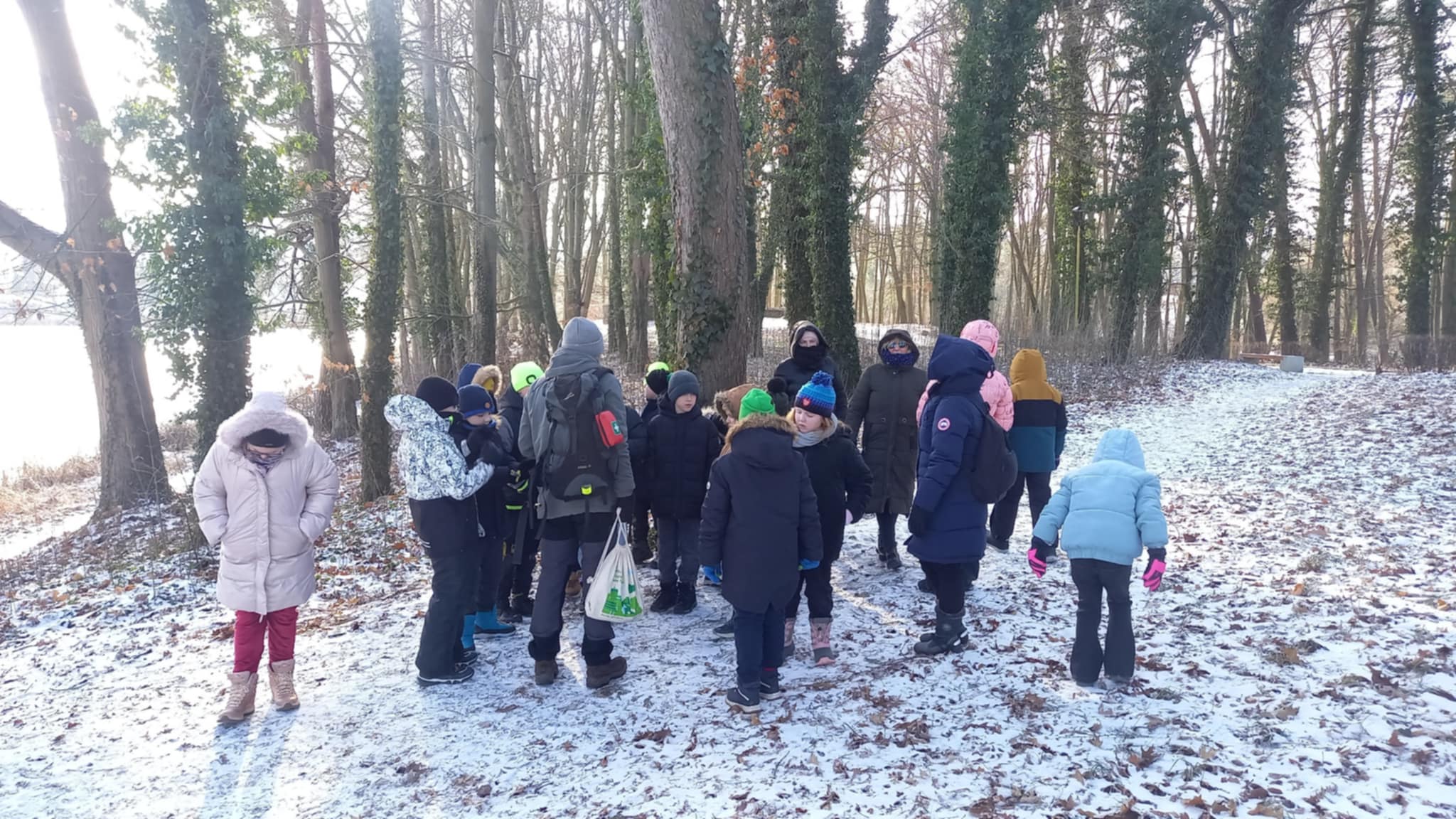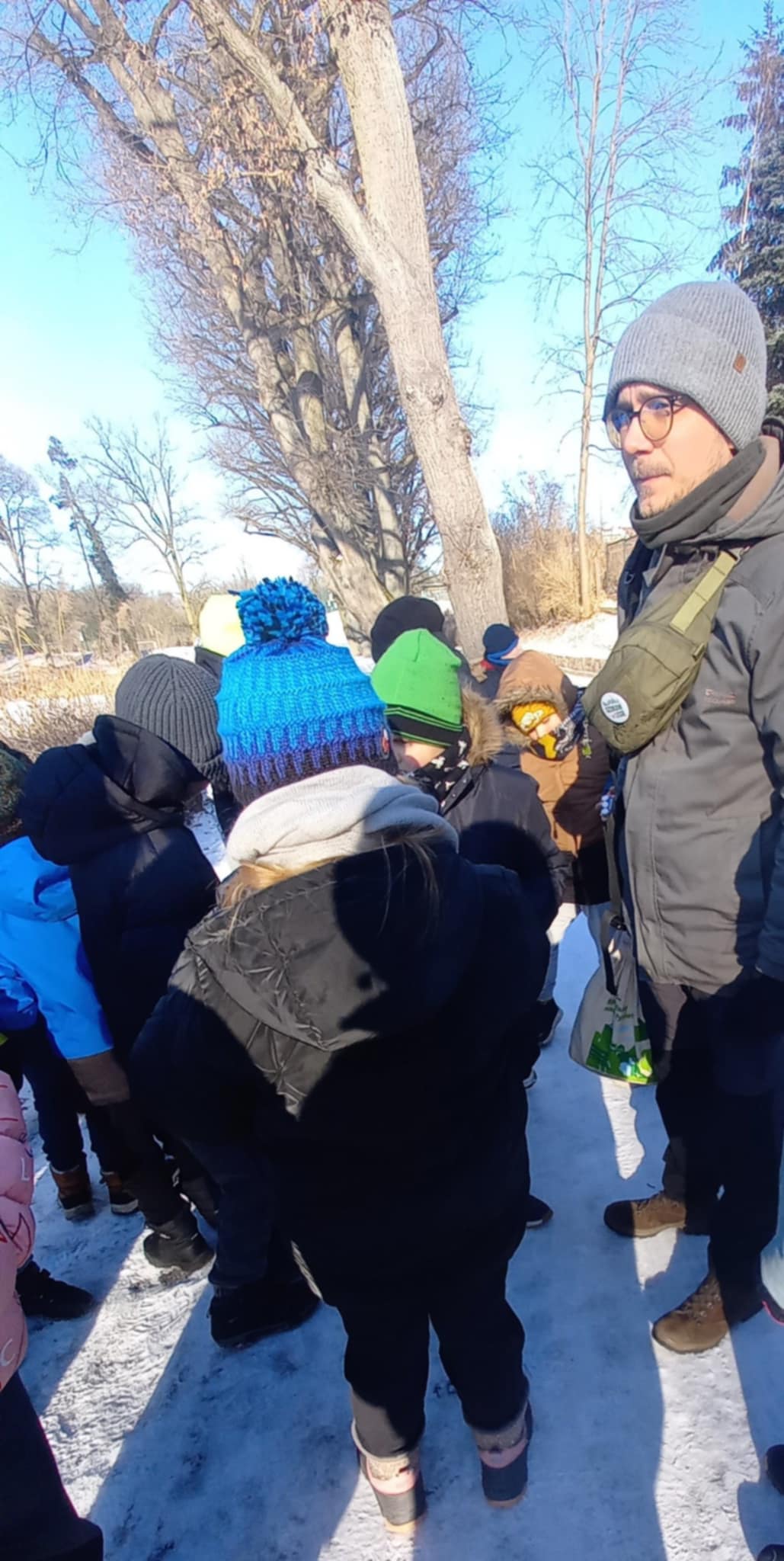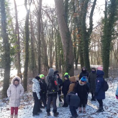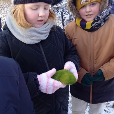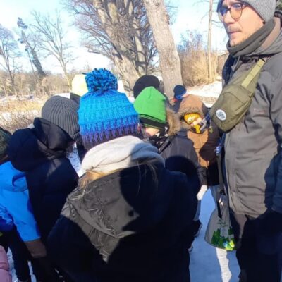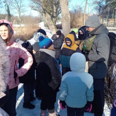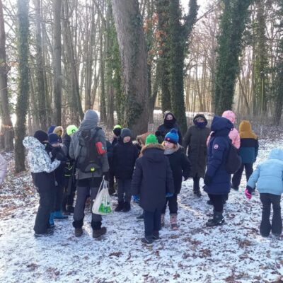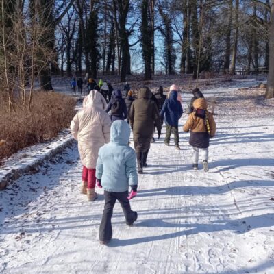 Nasze spacery łączą edukację przyrodniczą z edukacją na temat śmieci i ich wpływu na środowisko. Grupa dzieci i dorosłych wybrała się wspólnie do lasu, gdzie poznała między innymi tajemnice leśnego ekosystemu, uczyła się rozpoznawać tropy zwierząt, dowiedziała się, jak śnieg wpływa na las oraz które gatunki zapadają w sen zimowy.