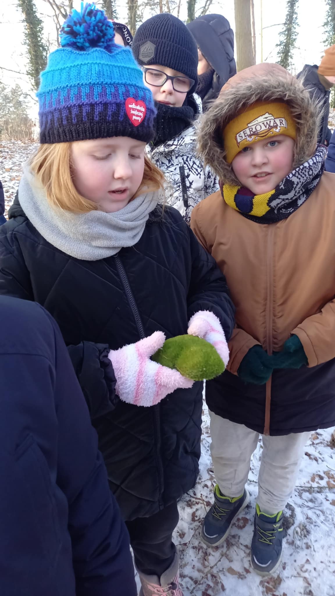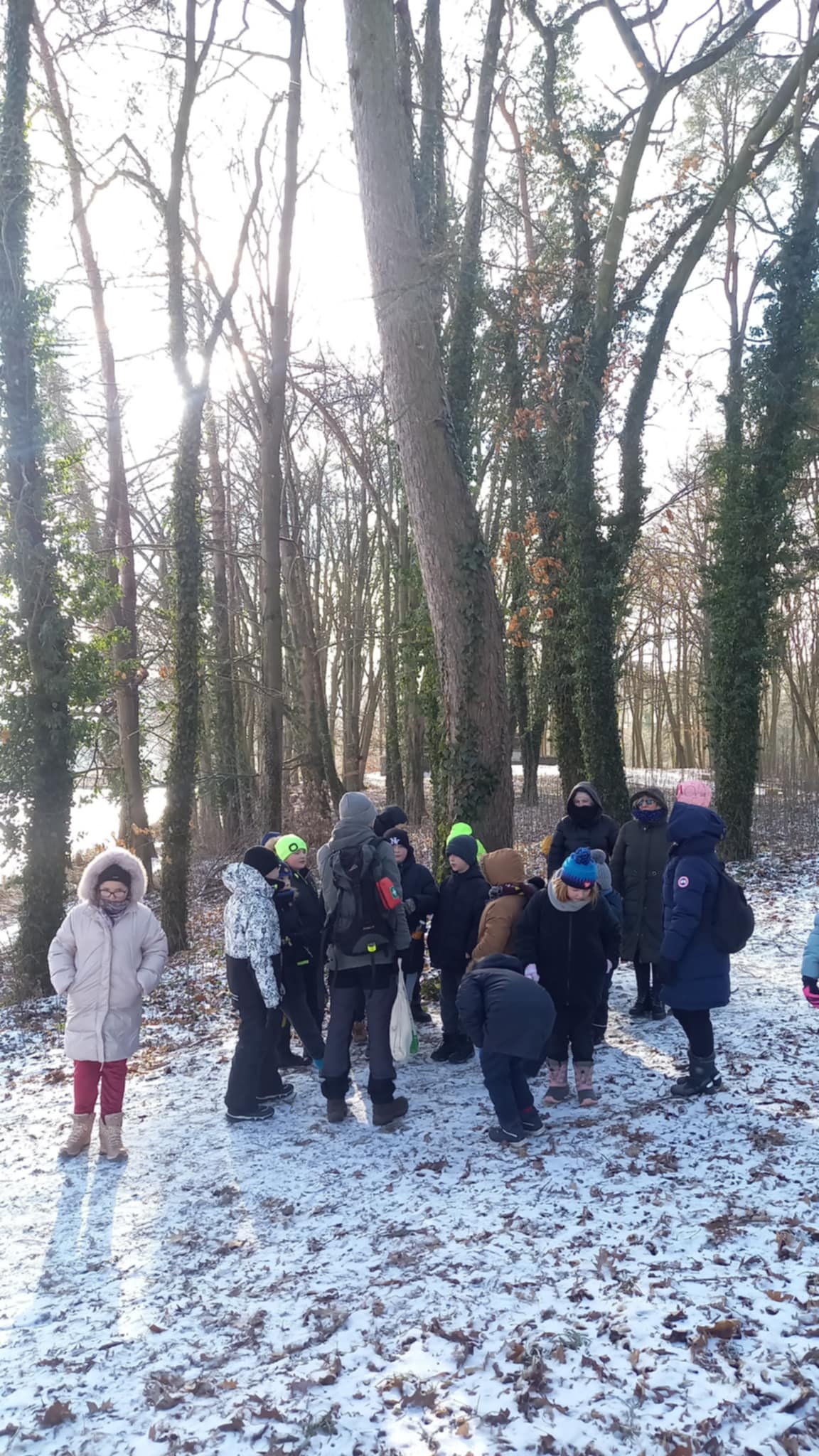 Mimo mroźnej, zimowej aury frekwencja dopisała i grupa dzielnych uczestników z entuzjazmem wzięła udział w spacerze, gdzie czekały również dodatkowe atrakcje, w tym poszukiwanie ukrytych leśnych skarbów.
